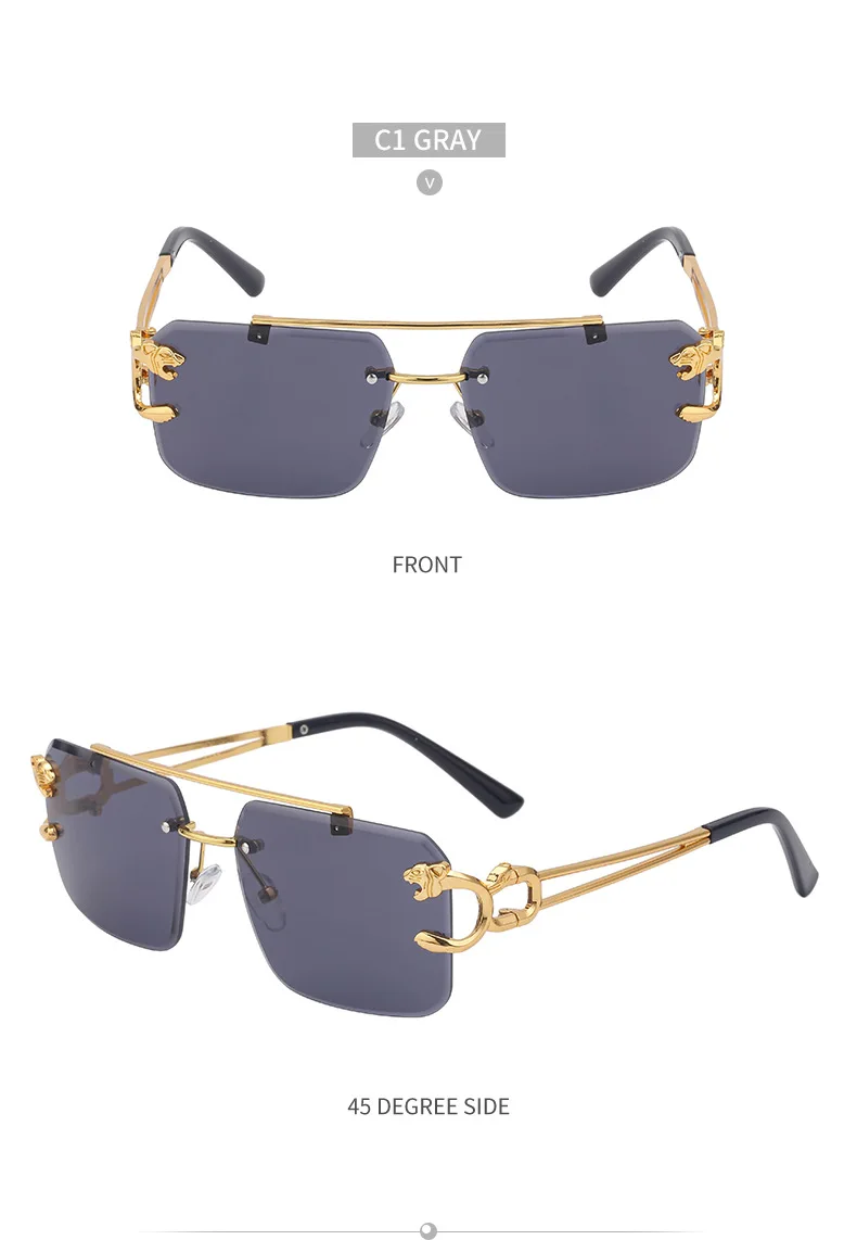 2023 Cheap Fashion Vintage Leopard Head Double Bridge Stylish Rimless Sunglasses UV400 Protection Women Sun Glasses